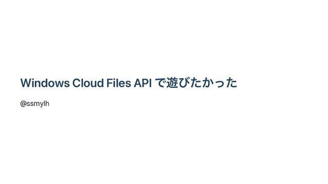 Windows Cloud Files API Ͱ༡ͼ͔ͨͬͨ @ssmylh