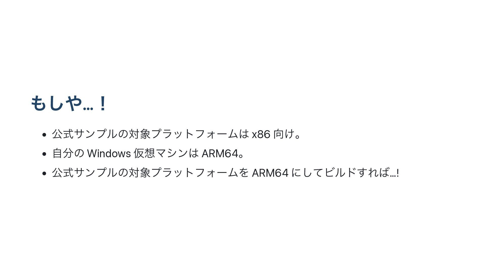 ͠…ʂ • ެࣜαϯϓϧͷରϓϥοτϑΥʔϜ x86 ͚ɻ • ࣗͷ Windows ԾϚγϯ ARM64ɻ