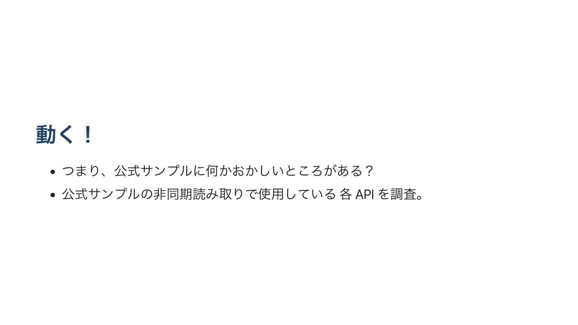 ಈ͘ʂ • ͭ·ΓɺެࣜαϯϓϧʹԿ͔͓͔͍͠ͱ͜Ζ͕͋Δʁ • ެࣜαϯϓϧͷඇಉظಡΈऔΓͰ༻͍ͯ͠Δ ֤ API Λௐࠪɻ