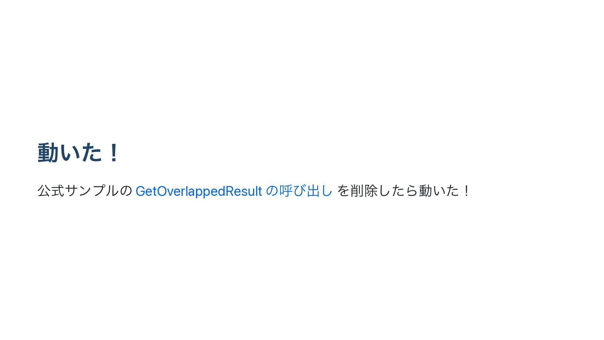 ಈ͍ͨʂ ެࣜαϯϓϧͷ GetOverlappedResult ͷݺͼग़͠ Λআͨ͠Βಈ͍ͨʂ