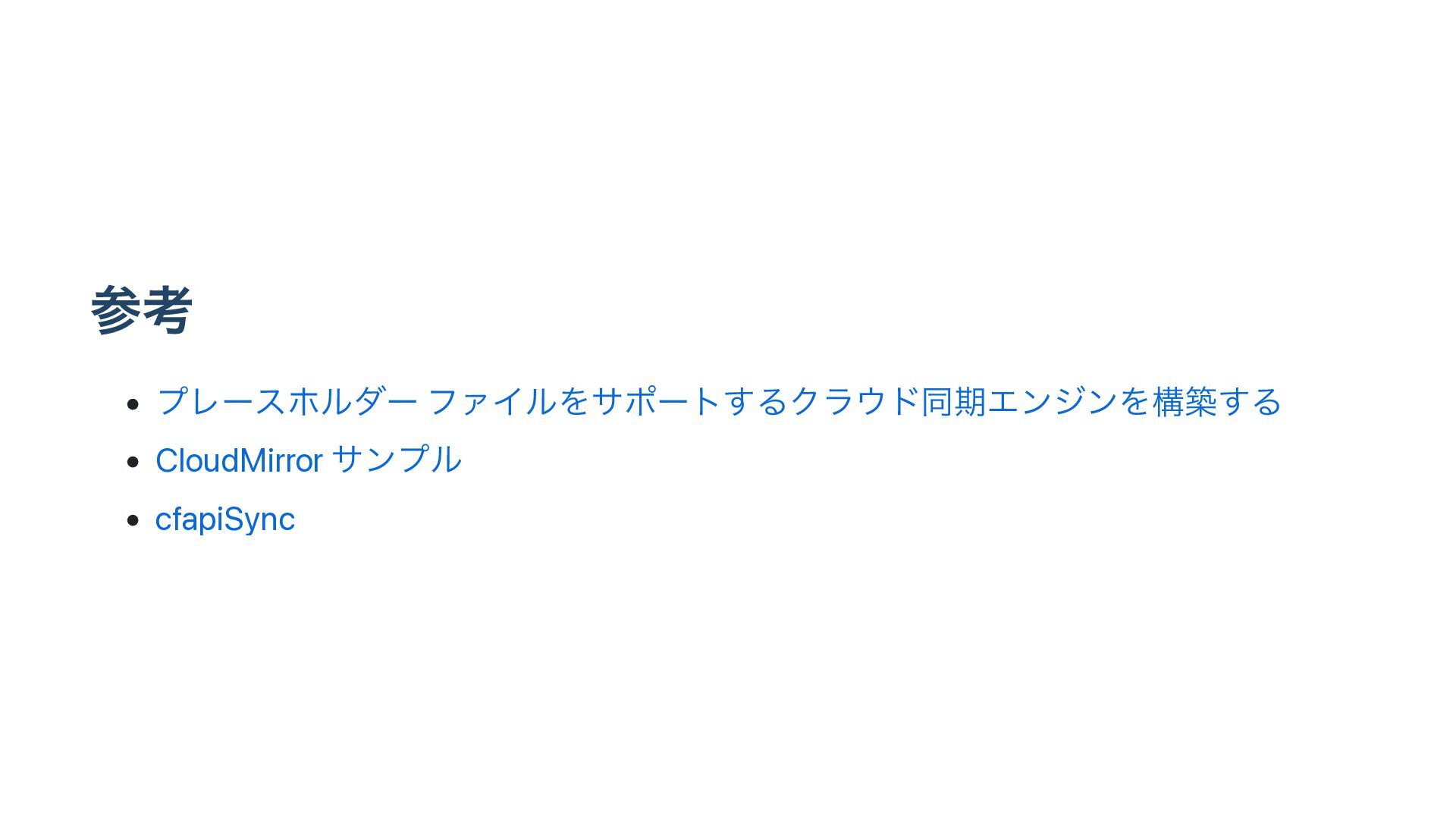 ࢀߟ • ϓϨʔεϗϧμʔ ϑΝΠϧΛαϙʔτ͢ΔΫϥυಉظΤϯδϯΛߏங͢Δ • CloudMirror αϯϓϧ • cfapiSync