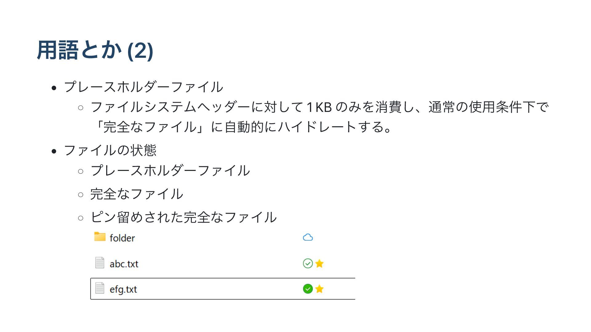 Creators Update) Ͱಋೖ͞Εͨɻ • Windows Ͱ OneDrive ͷ༷ʹϦϞʔτͷετϨʔδͱϩʔΧϧϑΝΠϧγεςϜΛ ౷߹͢Δҝͷ APIɻ • ϦϞʔτ্ͷϑΝΠϧΛϩʔΧϧϑΝΠϧγεςϜʹγʔϜϨεʹ౷߹͠ɺϩʔ ΧϧϑΝΠϧͷ༷ʹૢ࡞ՄೳʹͳΔɻ