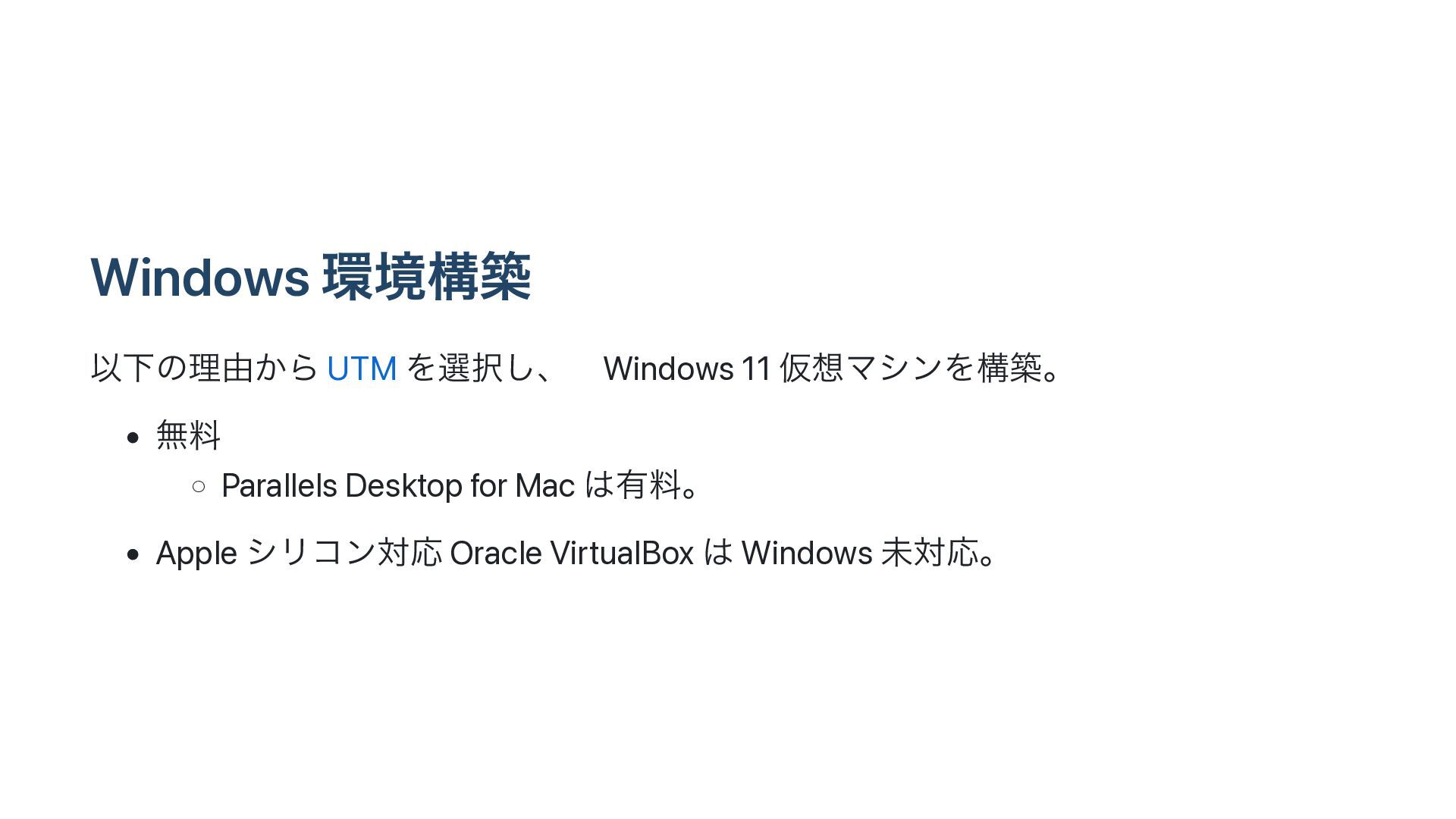 Windows ڥߏங ҎԼͷཧ༝͔Β UTM Λબ͠ɺɹWindows 11 ԾϚγϯΛߏஙɻ • ແྉ ◦