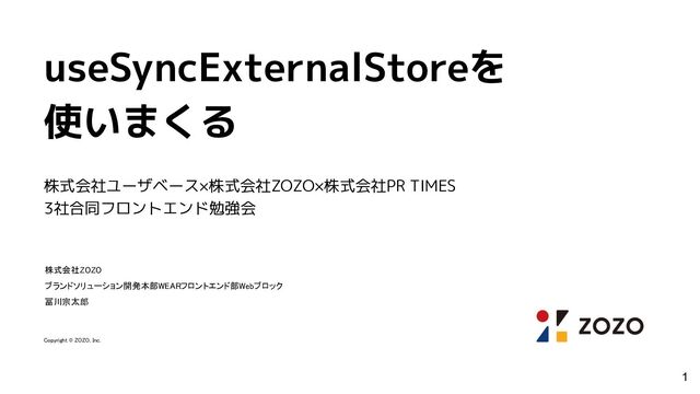 useSyncExternalStoreを 使いまくる 株式会社ユーザベース×株式会社ZOZO×株式会社PR TIMES 3社合同フロントエンド勉強会 株式会社ZOZO ブランドソリューション開発本部WEARフロントエンド部Webブロック 冨川宗太郎 Copyright ©
