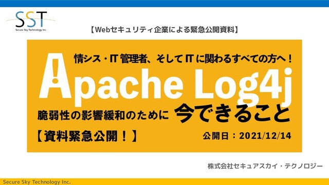 Secure Sky Technology Inc. 【Webセキュリティ企業による緊急公開資料】 情シス・IT管理者 ITに関わるすべての方向け 『Apache Log4j 脆弱性の