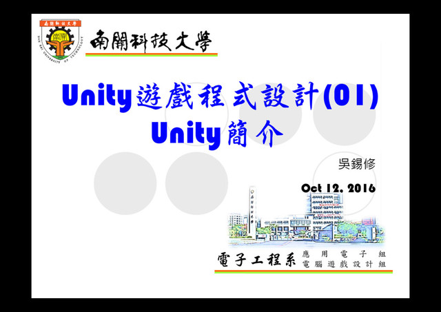 計 組 Unity遊戲程式設計(01) Unity簡介 吳錫修 Oct 12, 2016