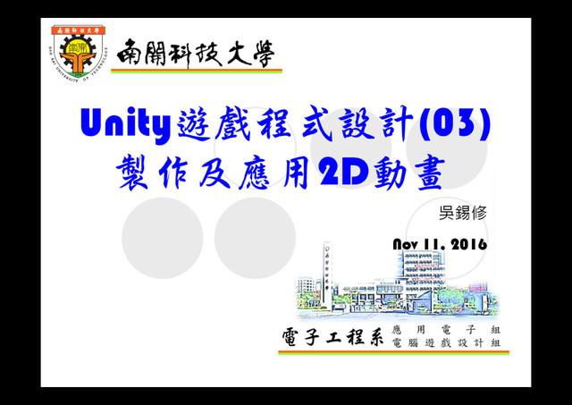 由動作分鏡之⼀連串sprite,連續播放達到動畫效果 動畫原理 9 Wu, ShyiShiou Dept. of E.E., NKUT