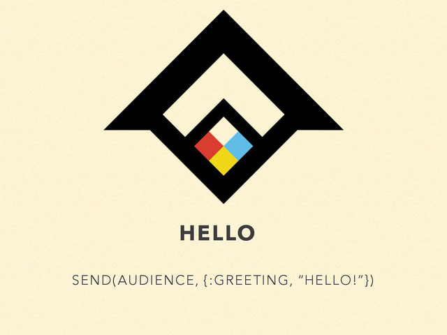 HELLO SEND(AUDIENCE, {:GREETING, “HELLO!”})