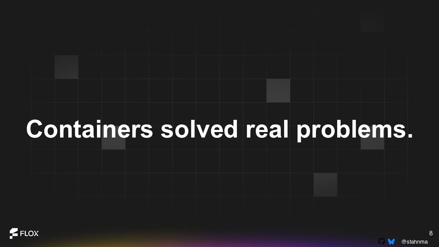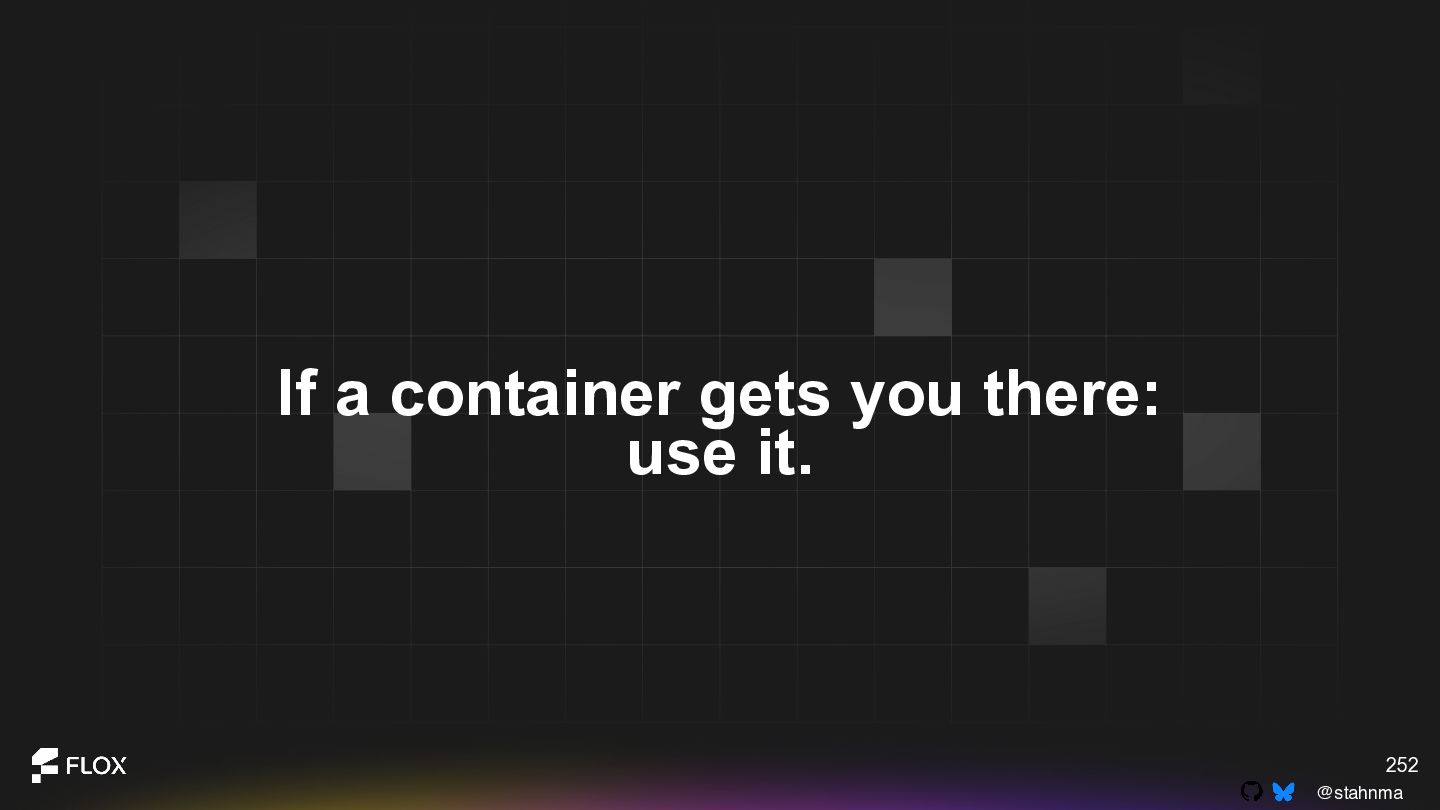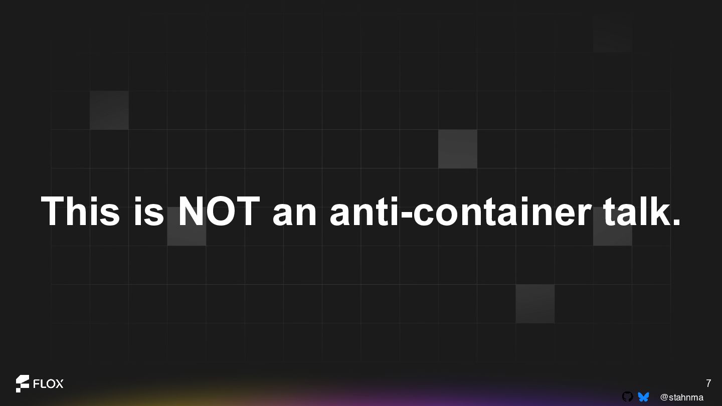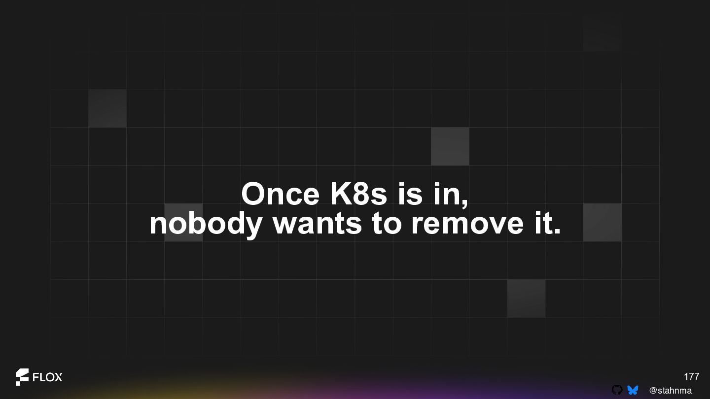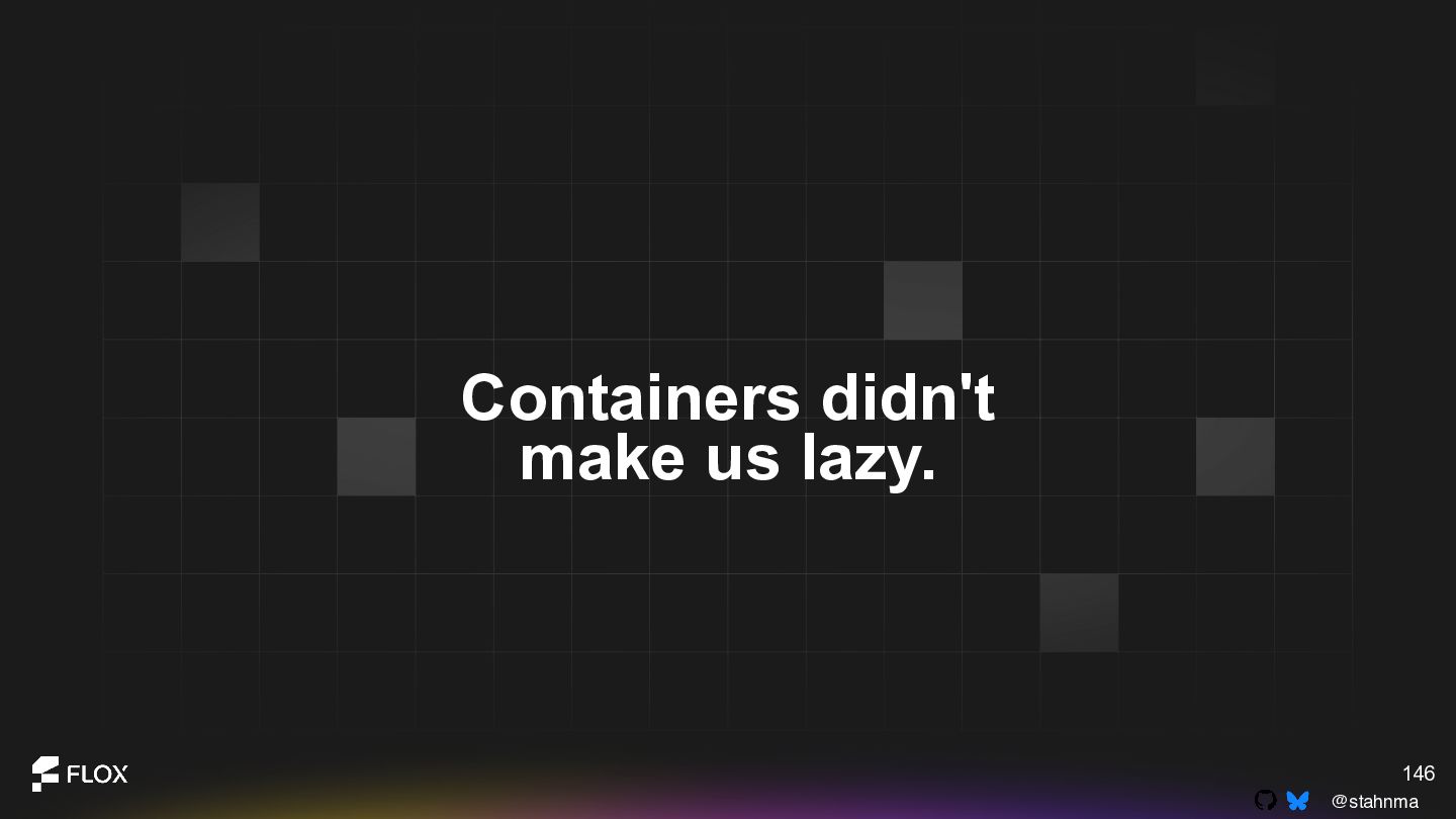 This is not an anti-container talk. It is an invitation to reexamine long-standing assumptions with the experience we have now. Attendees will walk away with a practical framework for deciding when containers are genuinely the best choice, when alternative patterns might reduce cognitive or operational overhead, and how to have healthy, blame-free conversations about technical change within their teams.