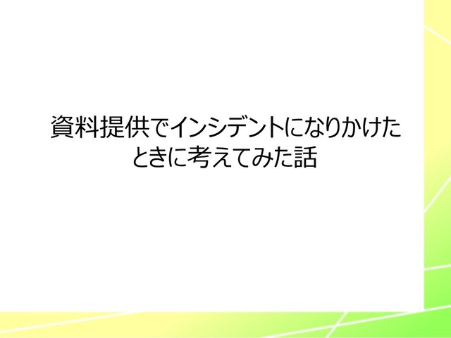 この時の私をふりかえってみた • PPTにインシデントにかかわる情報はないと自分で確認 していた – あるのわかって出したらそりゃおかしいよ、、、 • 過去(前職)ではPPTで出すことも多かった • 提出の前日に『明日顧客に説明する資料作ったよ!