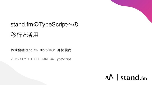 stand.fmのTypeScriptへの 移行と活用 株式会社stand.fm エンジニア 外松 俊尚 2021/11/10 TECH STAND #6 TypeScript