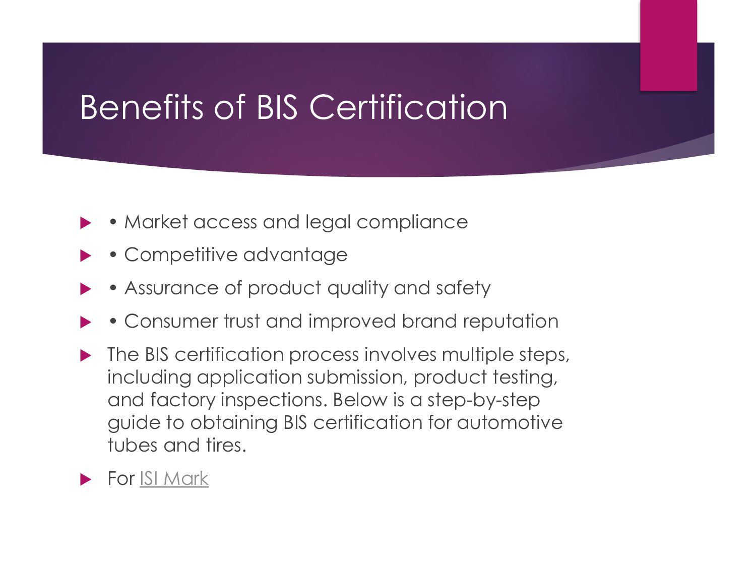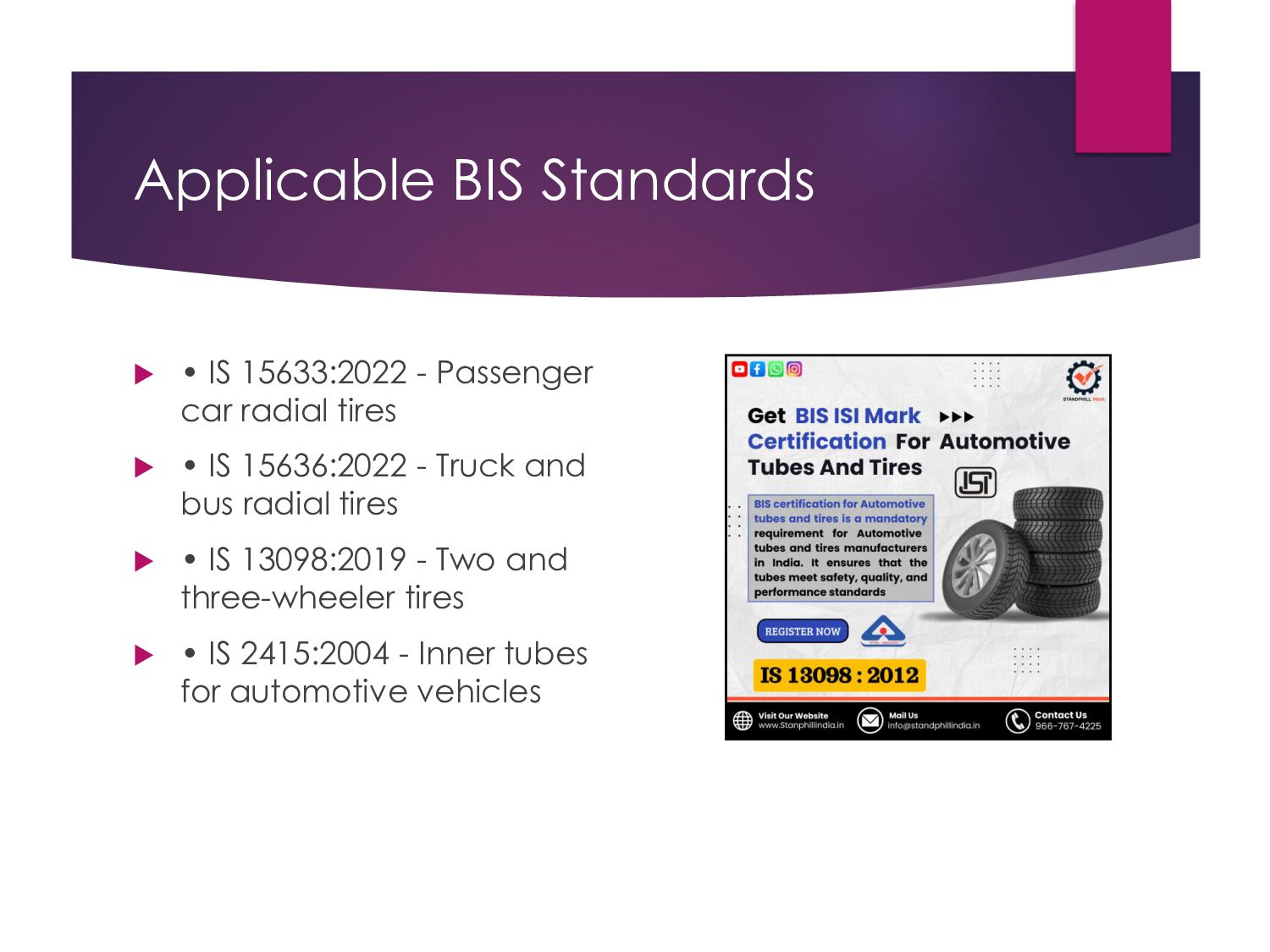 For manufacturers and suppliers of automotive tubes and tires, obtaining BIS certification is not just a legal requirement but also a mark of reliability, trust, and product excellence. This certification assures consumers and regulatory bodies that the product complies with high safety standards, reducing the risks of accidents due to poor-quality tires and tubes.
