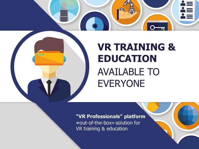 the subject content and the platform The “Administrator” application allows to manage and organize users, user groups and other platform data Software development kit (SDK) Custom content VR Professionals platform Virtual environments simulate/imitate real-world objects, their properties, functionality and interaction between them and the users to the required level of detail. THIS APPROACH ALLOWS TO GENERATE TRAINING SCENARIOS ON THE FLY
