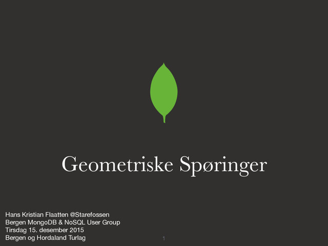1 ! Geometriske Spøringer Hans Kristian Flaatten @Starefossen Bergen MongoDB
