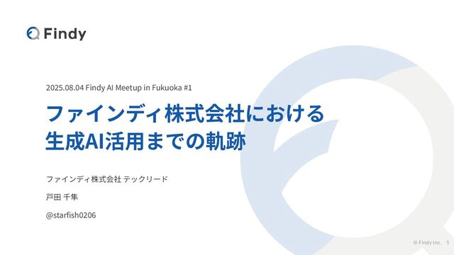 ファインディ株式会社における ⽣成AI活⽤までの軌跡 1 ファインディ株式会社 テックリード ⼾⽥ 千隼 @starfish0206