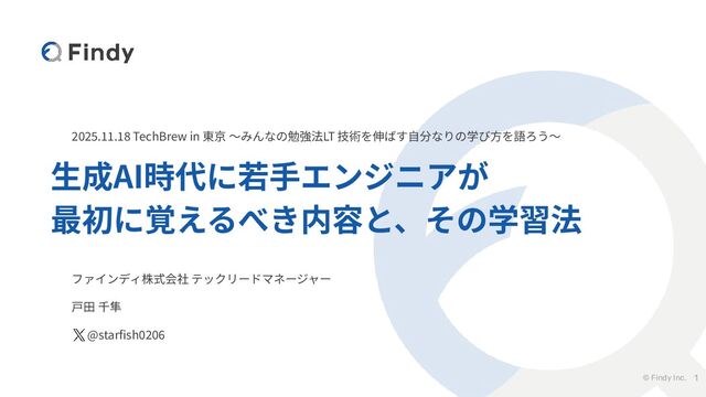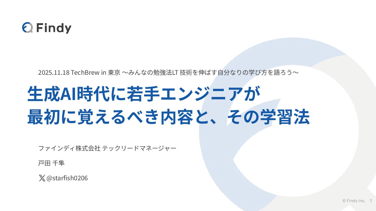 © Findy Inc. 2025.11.18 TechBrew in 東京 〜みんなの勉強法LT 技術を伸ばす⾃分なりの学び⽅を語ろう〜 ⽣成AI時代に若⼿エンジニアが