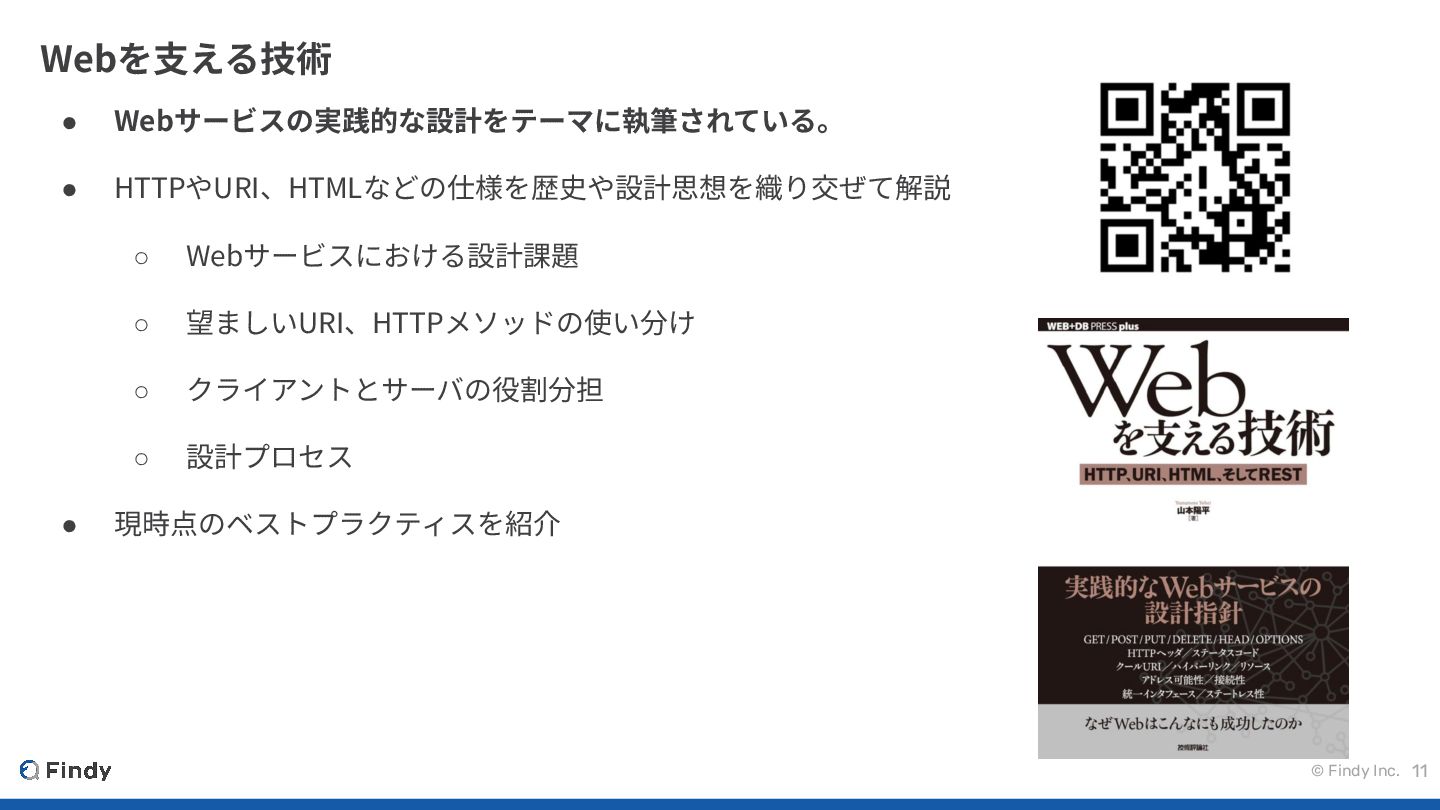 © Findy Inc. 11 Webを⽀える技術 • Webサービスの実践的な設計をテーマに執筆されている。 • HTTPやURI、HTMLなどの仕様を歴史や設計思想を織り交ぜて解説 ◦