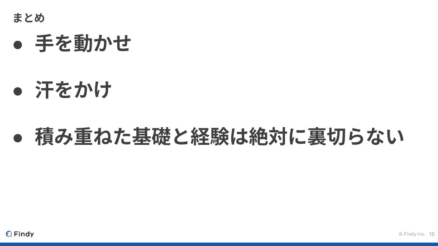 © Findy Inc. 15 まとめ • ⼿を動かせ • 汗をかけ •