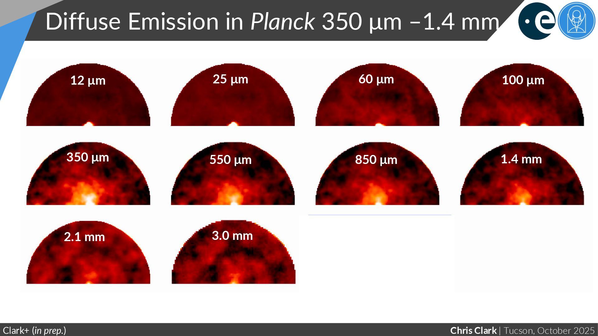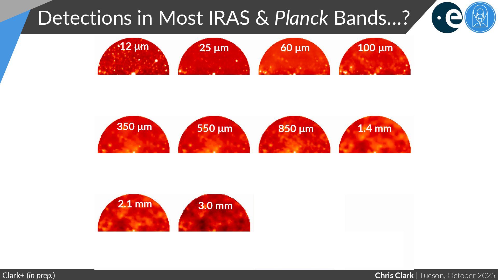 Chemistry Clark+ (in prep.) (At the Rayleigh-Jeans limit, α → β +2) Very different power-law for oxygen-rich vs carbon-rich stars Power law gets shallower at longer wavelengths: We don’t see this for general Milky Way dust (which has constant α to within errors) Steeper slope Shallower slope “Bright” stacks only include sources that are individually detected at Planck 350 μm, to maximise S/N at longer wavelengths