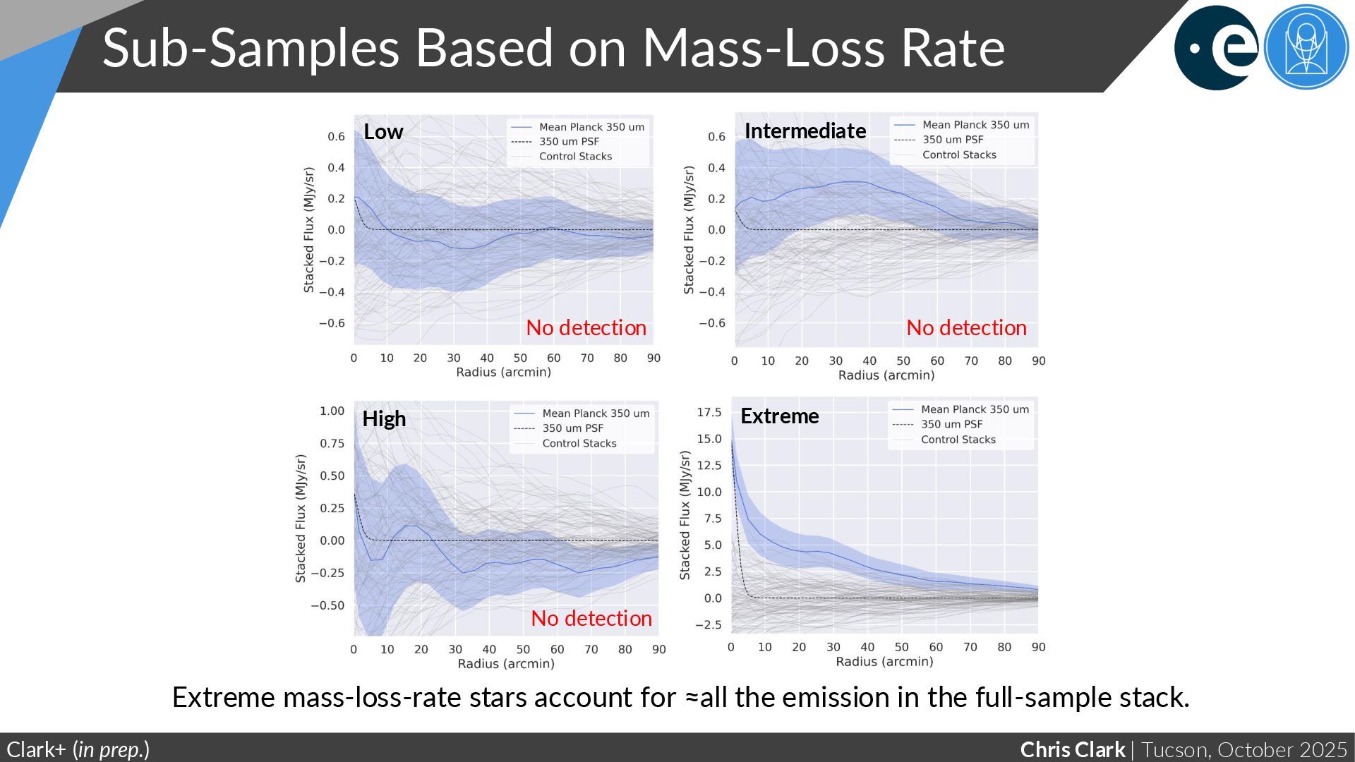 Rate Clark+ (in prep.) Extreme mass-loss-rate stars account for ≈all the emission in the full-sample stack. Low High Extreme Intermediate No detection No detection No detection