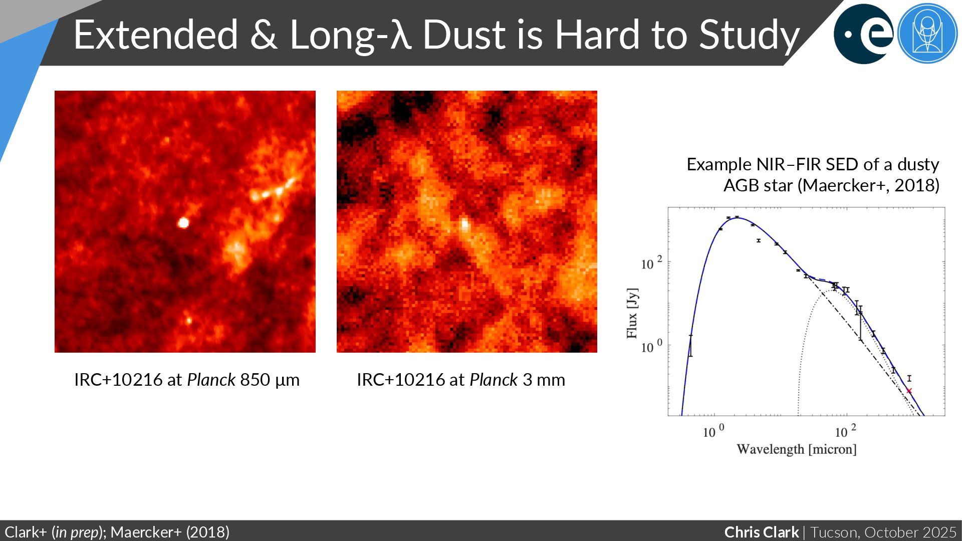 is Hard to Study Clark+ (in prep); Maercker+ (2018) IRC+10216 at Planck 850 μm IRC+10216 at Planck 3 mm Example NIR–FIR SED of a dusty AGB star (Maercker+, 2018)