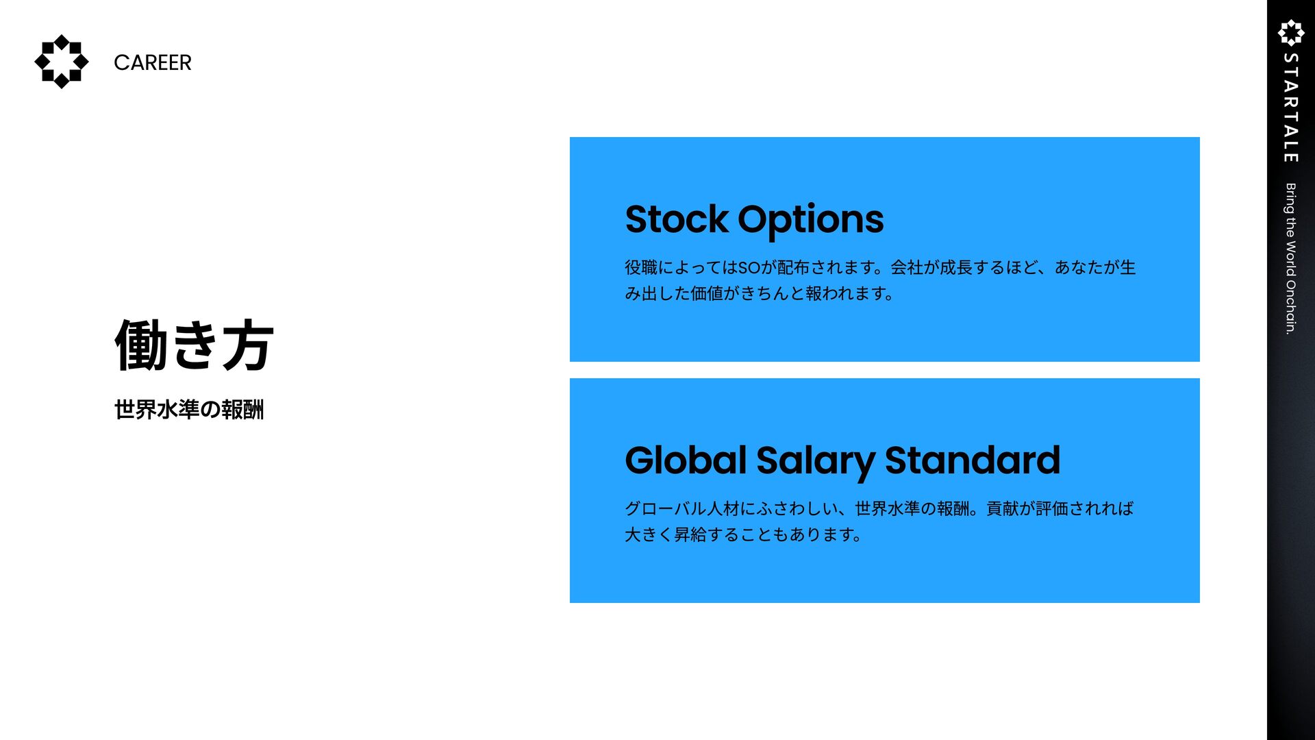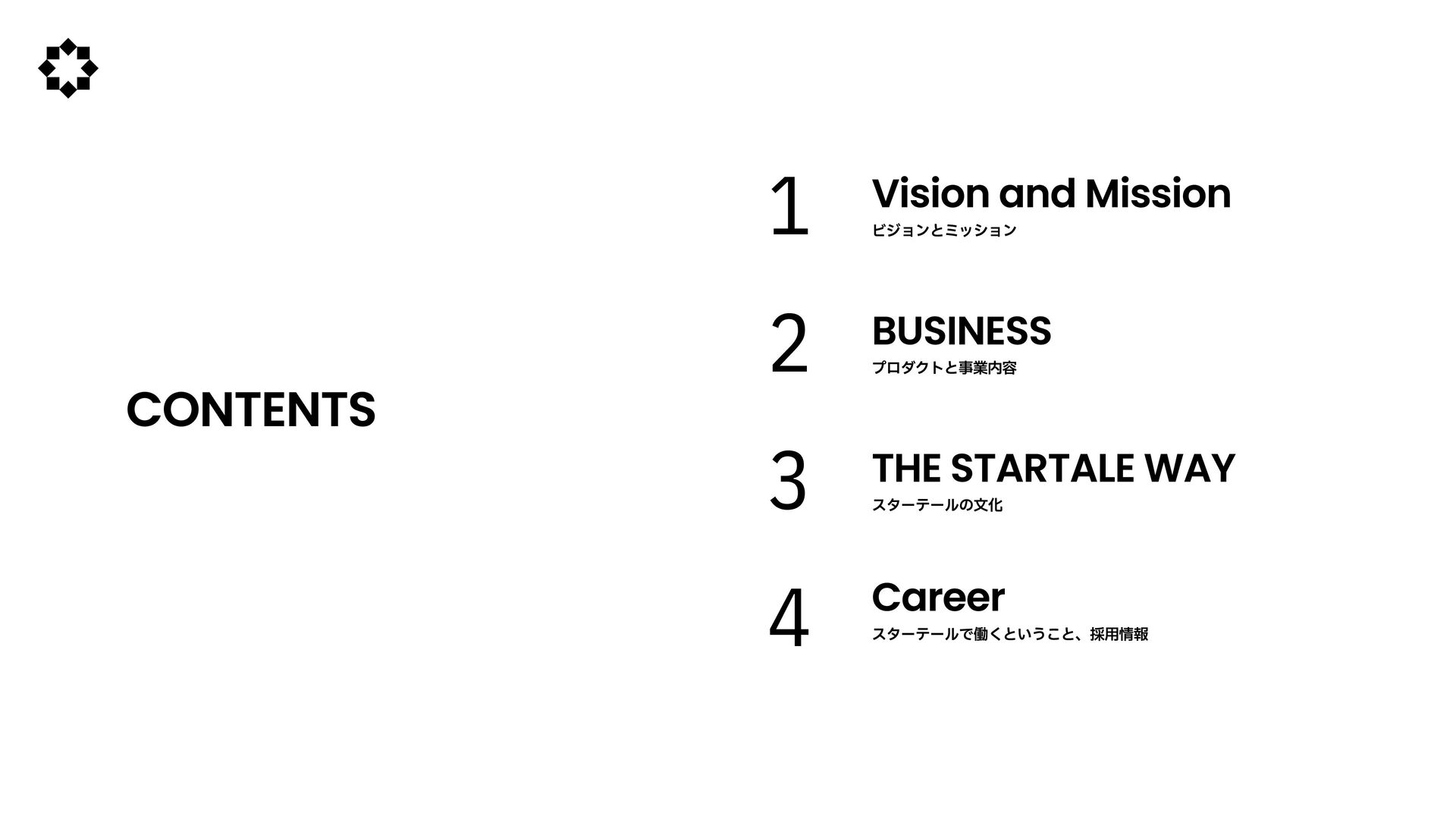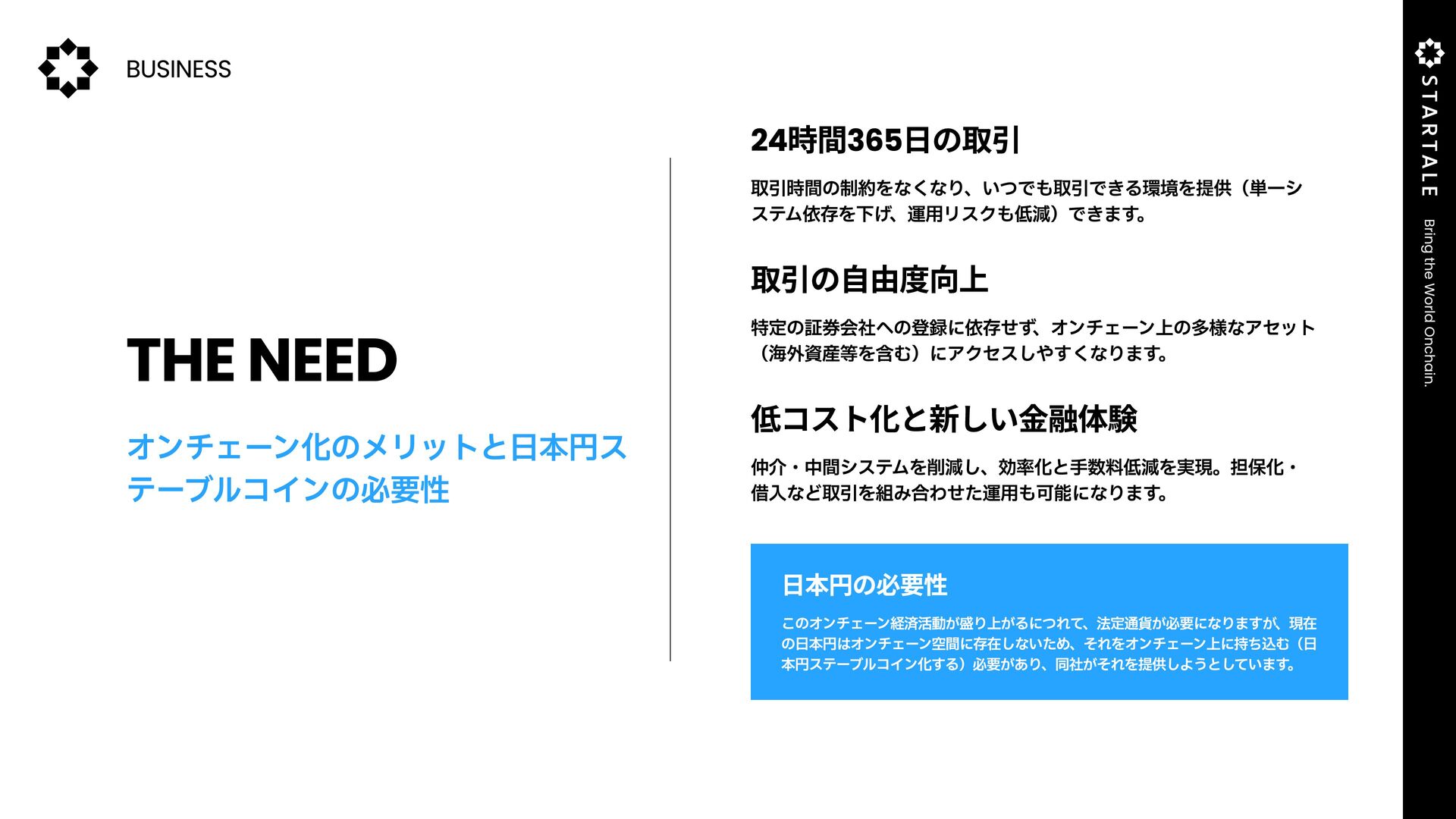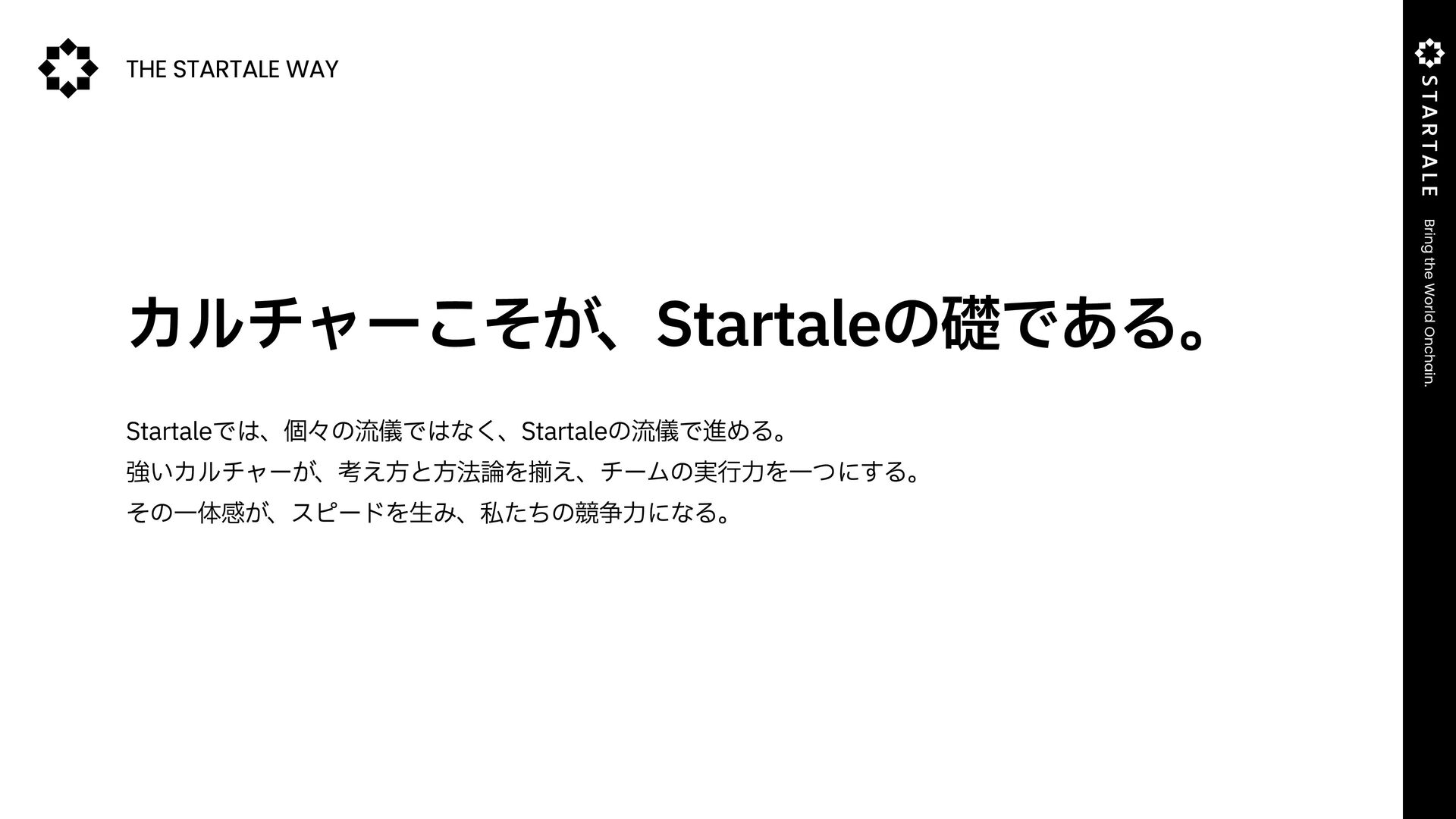 Startaleは、世界をオンチェーン化するインフラとアプリケーションを提供し、次の文明の基盤を築く会社です。このデッキでは、弊社のビジョンやミッション、またビジネス展開とチーム編成をまとめています。