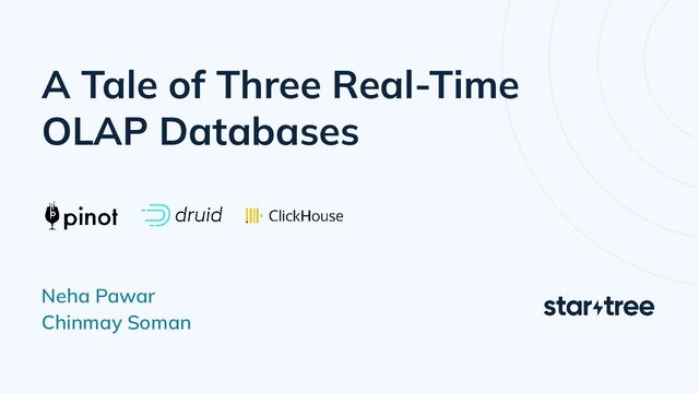 Open source OLAP databases are getting increasingly popular in the last few years and have seen mainstream adoption in several big companies such as LinkedIn, Uber, Netflix, Cisco, Bloomberg and so on. Choosing the right OLAP database depends on several factors such as use case, ingestion constraints and methodology, query performance, and production readiness to name a few. In this talk, we present a high-level comparison of 3 such open-source OLAP databases: Apache Pinot, Apache Druid, and Clickhouse with these dimensions in mind. In addition, we will also look at certain salient features in-depth to uncover how things work under the hood across different systems.