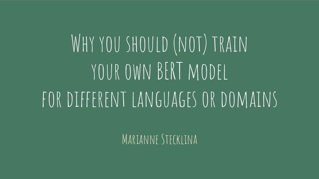 BERT has been shown to successfully transfer knowledge from pre-training to many different NLP benchmark tasks. How good can this transfer work for non-English or domain-specific texts, though?