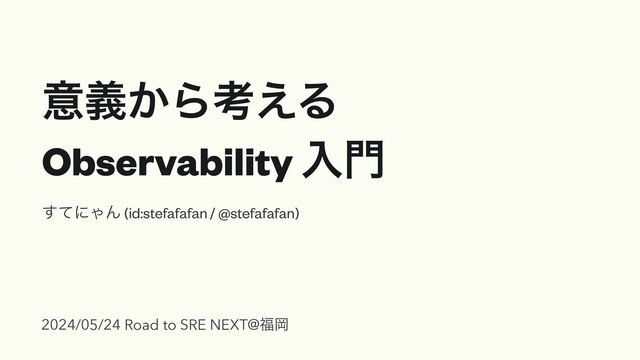 ҙ͔ٛΒߟ͑Δ Observability ೖ ͯ͢ʹΌΜ (id:stefafafan / @stefafafan) 2024/05/24 Road to