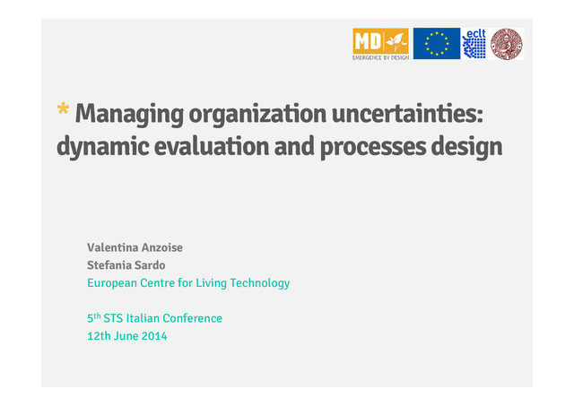 the European Union's Seventh Framework Programme (FP7/2007-2013) under grant agreement n°284625 Emergence by Design project 2 5th STS Italian Conference | Anzoise - Sardo