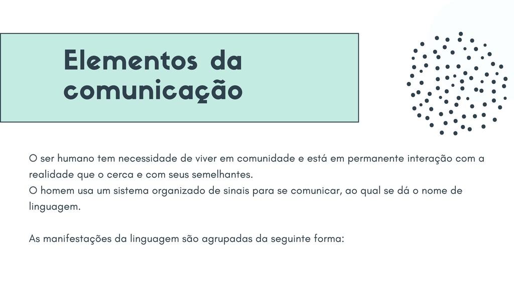 em comunidade e está em permanente interação com a realidade que o cerca e com seus semelhantes. O homem usa um sistema organizado de sinais para se comunicar, ao qual se dá o nome de linguagem. As manifestações da linguagem são agrupadas da seguinte forma: