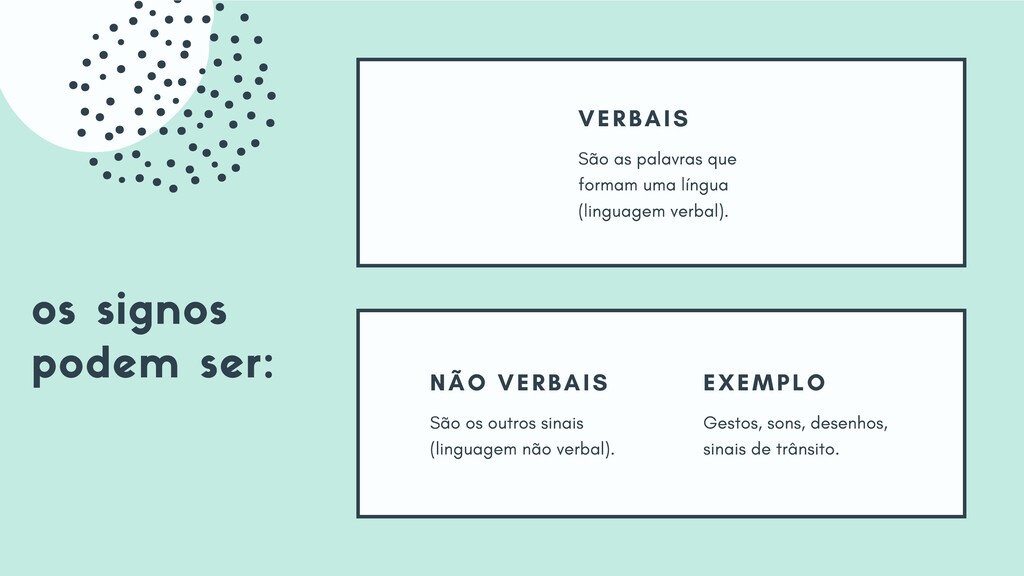 revistas, livros, bilhetes e etc. 2 - Falada: por meio do rádio, da televisão, da fala direta, do telefone, etc. MENSAGEM POR MEIO DE OUTROS RECURSOS 1 - Visual: fotos, gravuras, desenhos, imagens em filmes, bandeiras, semáforos, símbolos, etc. 2 - Auditiva: sirenes, buzinas, sons em tambor, companhias, etc. 3 - Mímica: gestos, expressões fisionômicas.