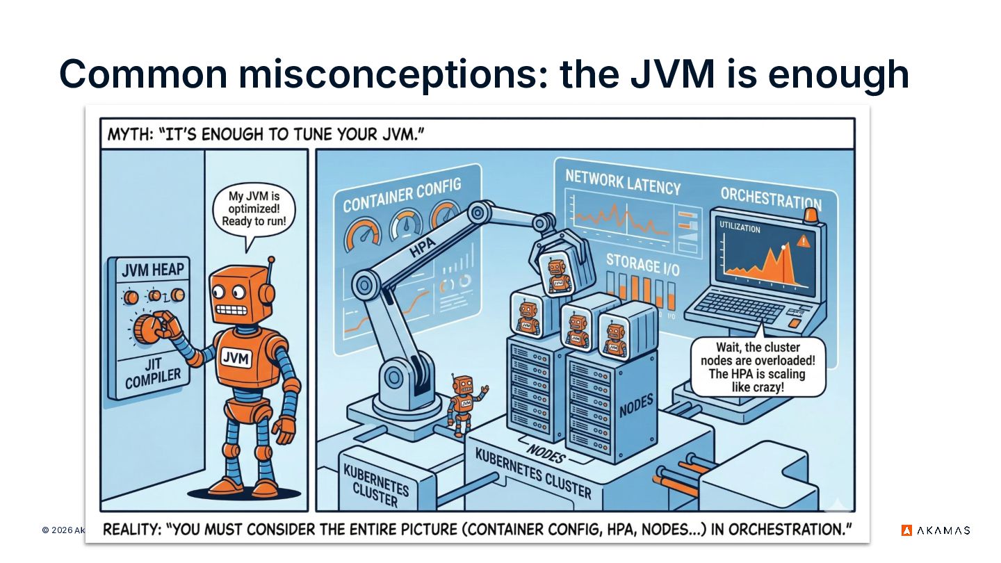 But this doesn’t mean the JVM can’t thrive on K8s! The solution lies in mastering the complex configuration interplay across the full stack, including JVM settings (e.g. GC, JIT) and K8s pod parameters (resource requests/limits, HPA scaling policies).