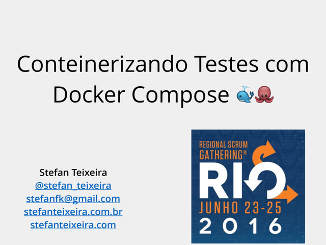 App (uma API REST) • DB (banco de dados MongoDB) • API Tests (testes de API escritos com Supertest) • https://github.com/stefanteixeira/demo-testing- compose