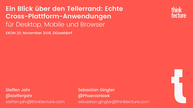 Steffen Jahr und Sebastian Gingter bauen regelmäßig solche Cross-Plattform Business-Anwendungen, und zwar auf Basis von Open-Source Technologien wie z.B. Angular 2, Type- bzw. JavaScript und Apache Cordova.