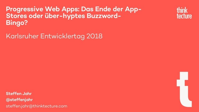 Progressive Web Apps (PWA) erfahren derzeit große Beachtung. 2015 von Google in Umlauf gebracht, ist es heute eines der prominentesten Buzzwords im Bereich der Webentwicklung. Sie versprechen Offlinefähigkeit, sollen installierbar sein, können Push-Benachrichtigungen und einiges mehr. Doch was steckt wirklich dahinter? Was gibt es bei der Entwicklung zu beachten und wie sieht die Unterstützung solcher PWAs auf verschiedenen Plattformen & Browsern aus? Sind PWAs wirklich das Ende der App-Stores oder nur ein weiteres Buzzword, das schnell wieder verschwindet? Finden wir es heraus! In diesem Talk möchte Steffen Jahr eine Einführung in die Welt der PWAs geben und zeigen, wie die Zukunft von Apps aussehen könnte. Let’s go!