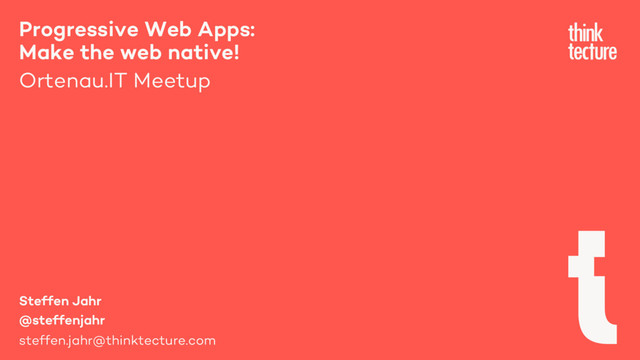 Steffen Jahr would like to give you a short introduction into the world of Progressive Web Apps and will show you how the future of applications could look like.