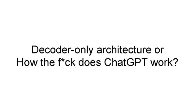 Decoder-only architecture or How the f*ck does ChatGPT work?