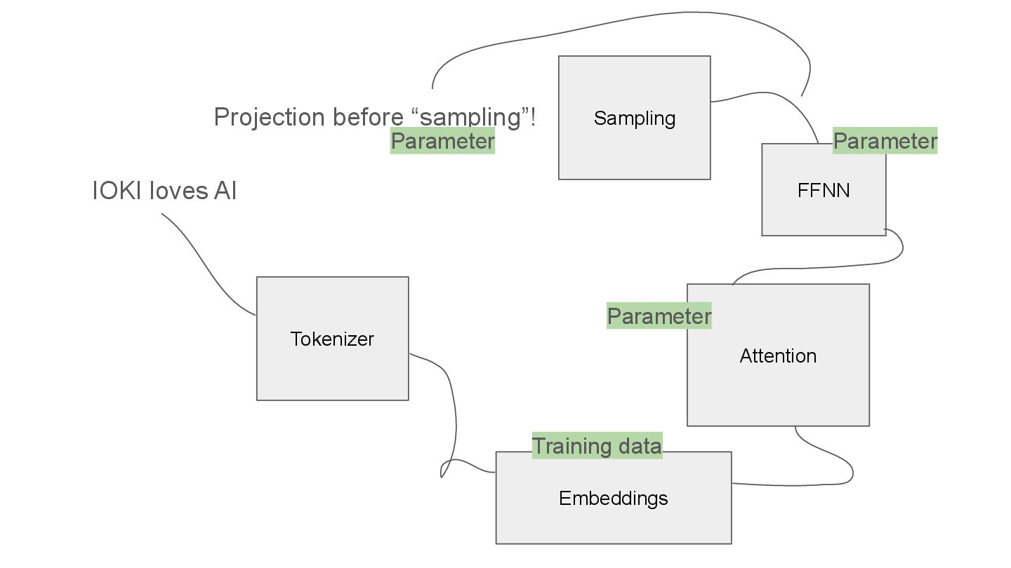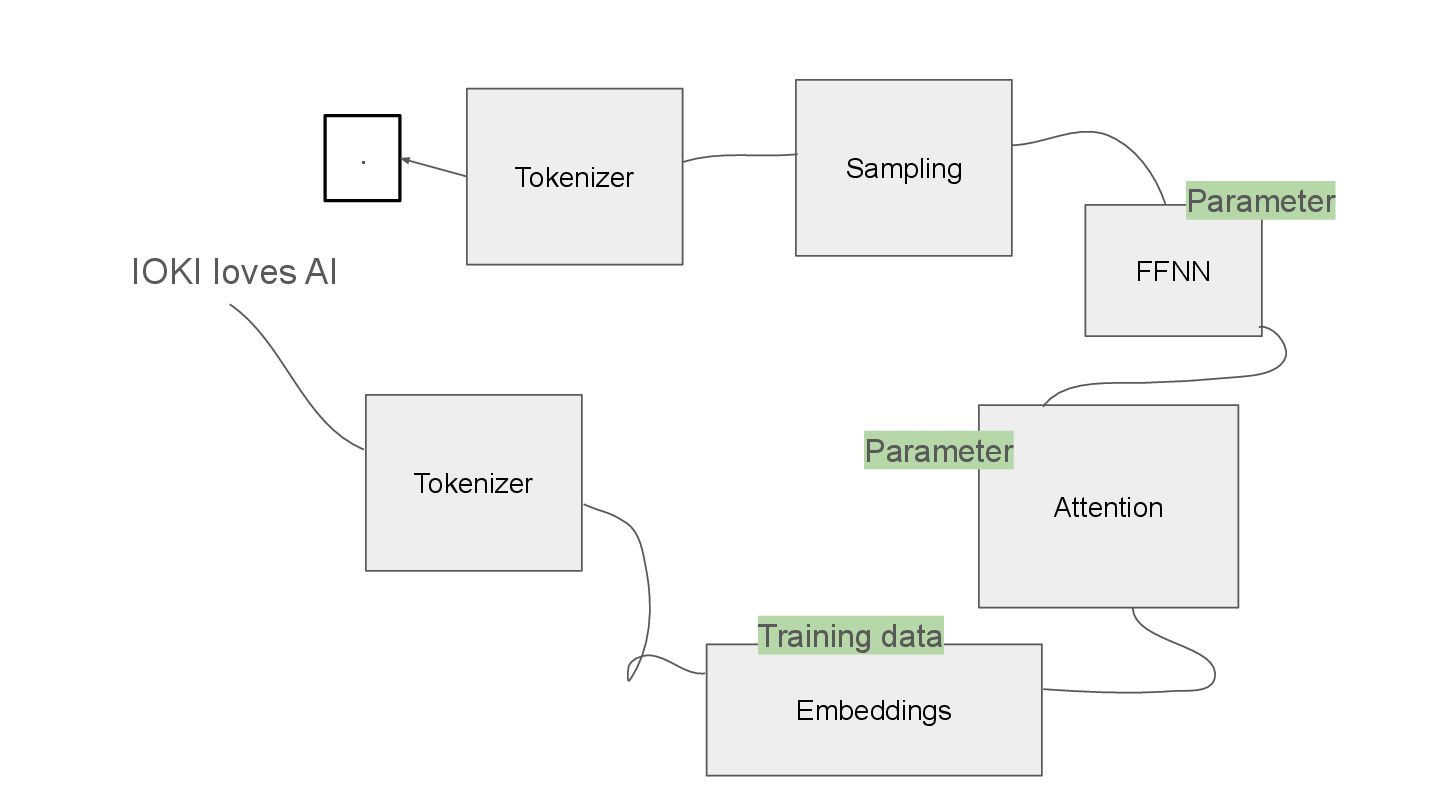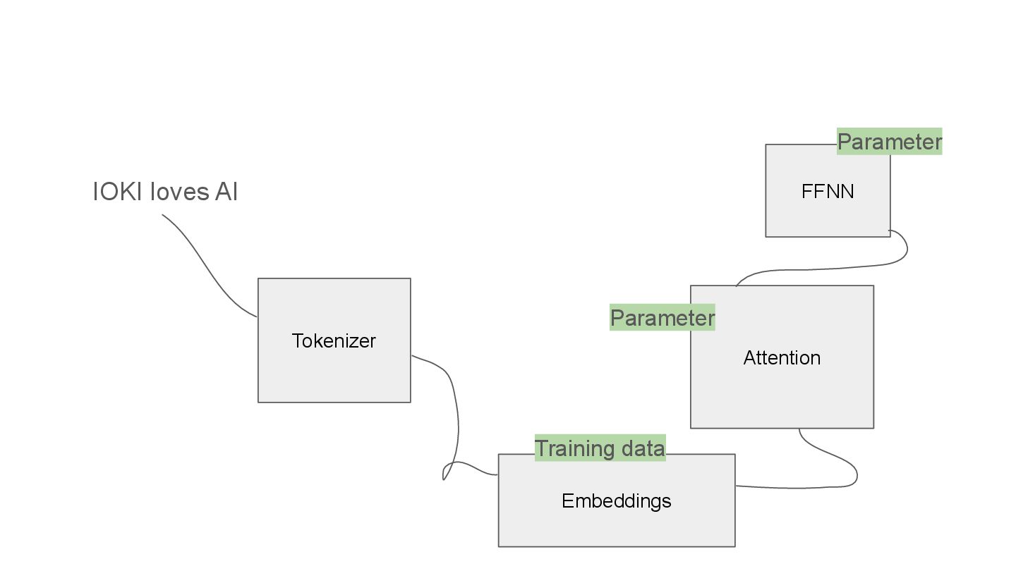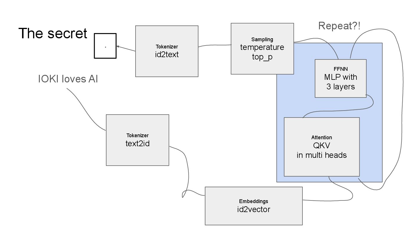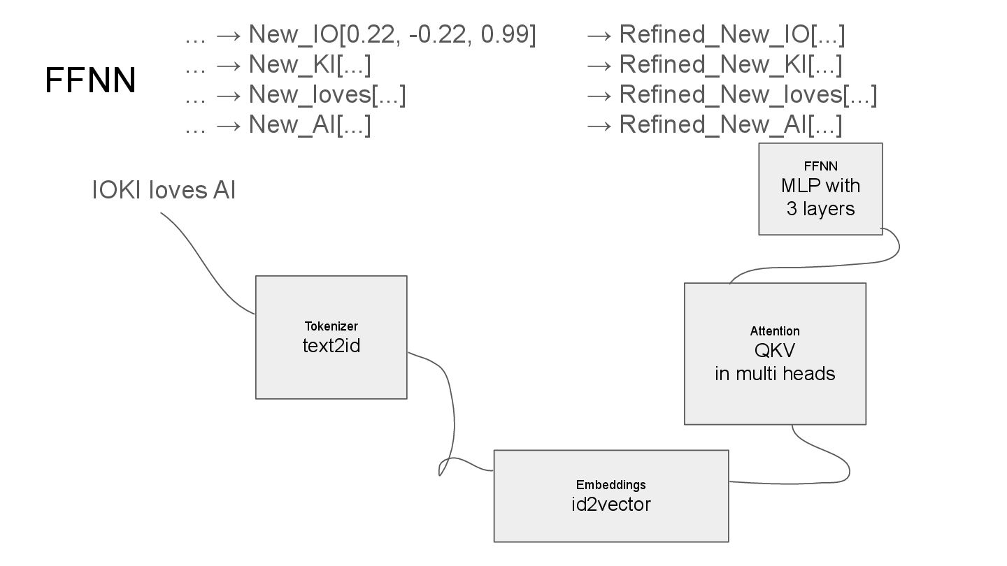QKV in multi heads IOKI IOKI(0.20) loves(0.30) AI(0.50) loves IOKI(0.46) loves(0.10) AI(0.53) AI IOKI(0.76) loves(0.14) AI(0.10) How much each token vector attend to another