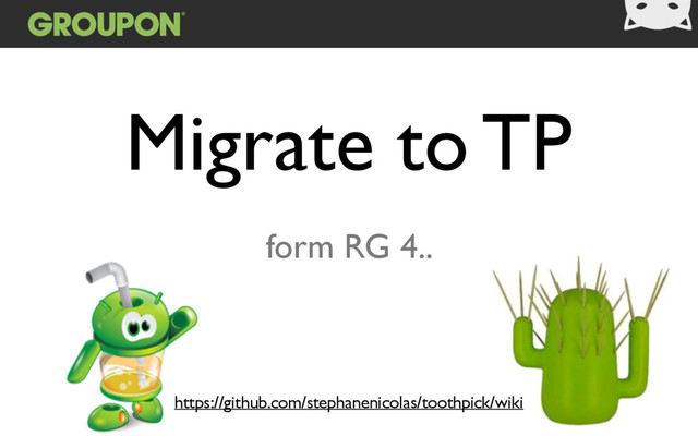 than RG. Dig into the TP wiki to get more insight on TP. TP has more to offer than RG: scopes spanning mul/ple ac/vi/es, state preserva/on across rota/ons, etc. We will slowly use these features in the app over next releases…