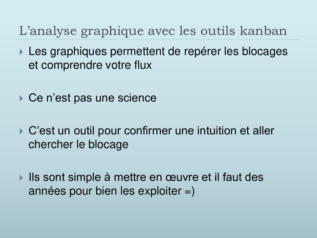de repérer les blocages et comprendre votre flux Ce n’est pas une science C’est un outil pour confirmer une intuition et aller chercher le blocage Ils sont simple à mettre en œuvre et il faut des années pour bien les exploiter =)