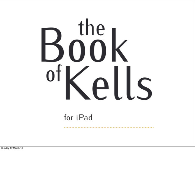 & other unknowns? •Set the foundations for multiple languages Sunday 17 March 13 1. Would we do new videos? 2. Being a different platform, we have to give people what they expect 3. How big/small a download should it be? Should we care? 4. What about all the stuff we still don’t know about?
