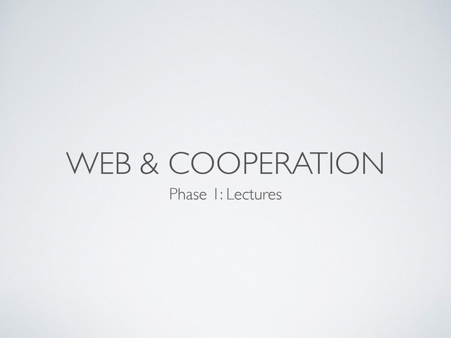 about the assignment, collect questions,… • Until 12.1: Each group member looks back individually. Results in the wiki • 15.1: Online presence: Each group individually • 23.1: Deliver a first version of your document, that describes you analysis • 30.1: Final Presentation & Document