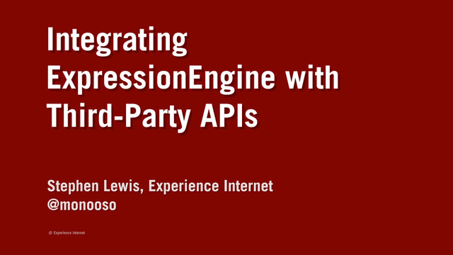 Experience Internet Integrating ExpressionEngine with Third-Party APIs Stephen Lewis, Experience