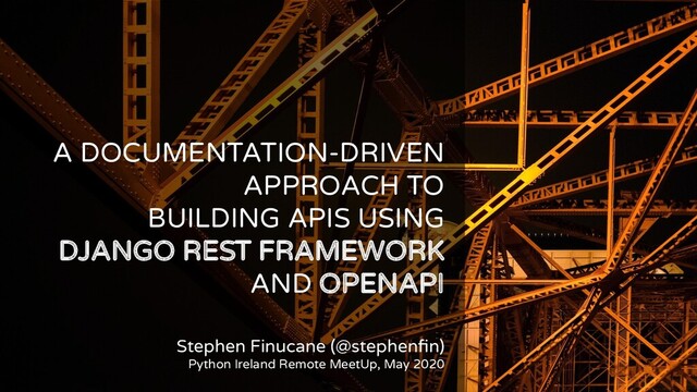 Django REST Framework (DRF) does for REST APIs what Django does for web applications more generally. That is, it provides a powerful, flexible framework to help quickly building applications. OpenAPI (formerly Swagger) provides a machine-readable schema for describing the REST APIs made possible by the likes of DRF. When combined, they allow you to do some pretty neat things, which we're going to cover in this talk: