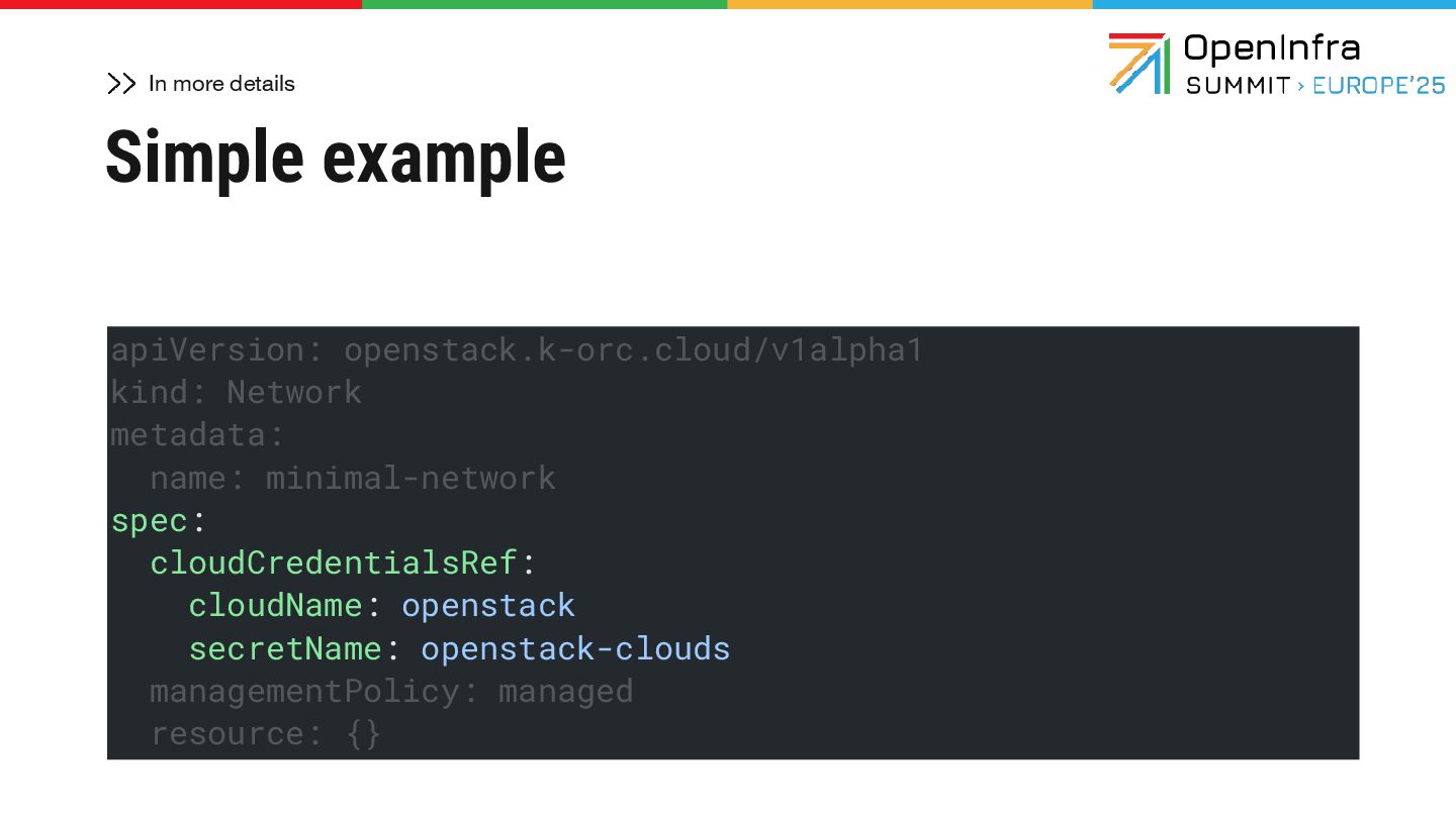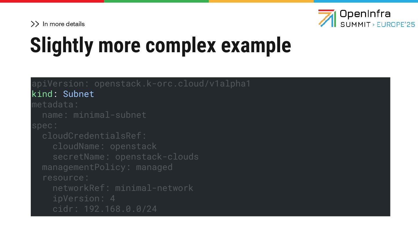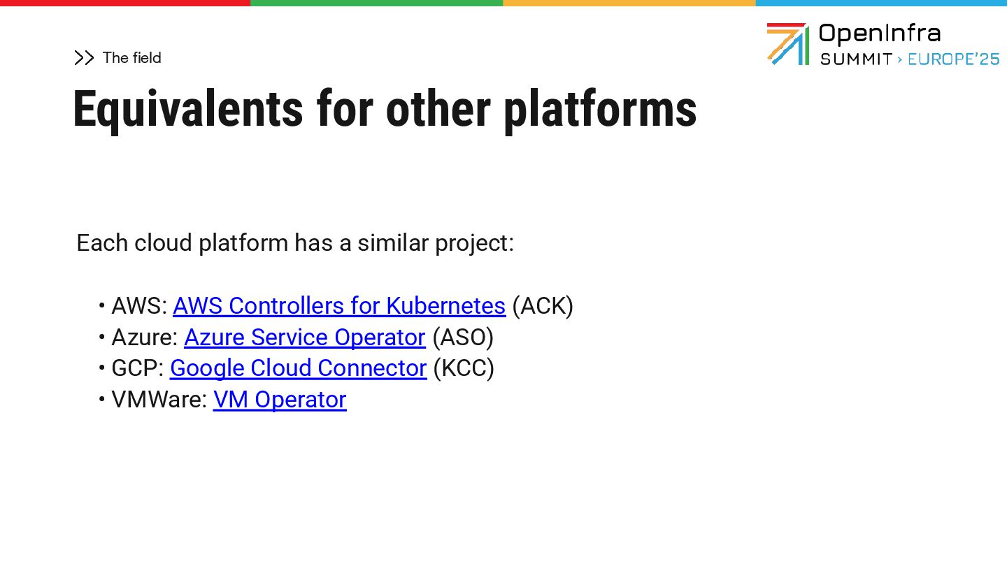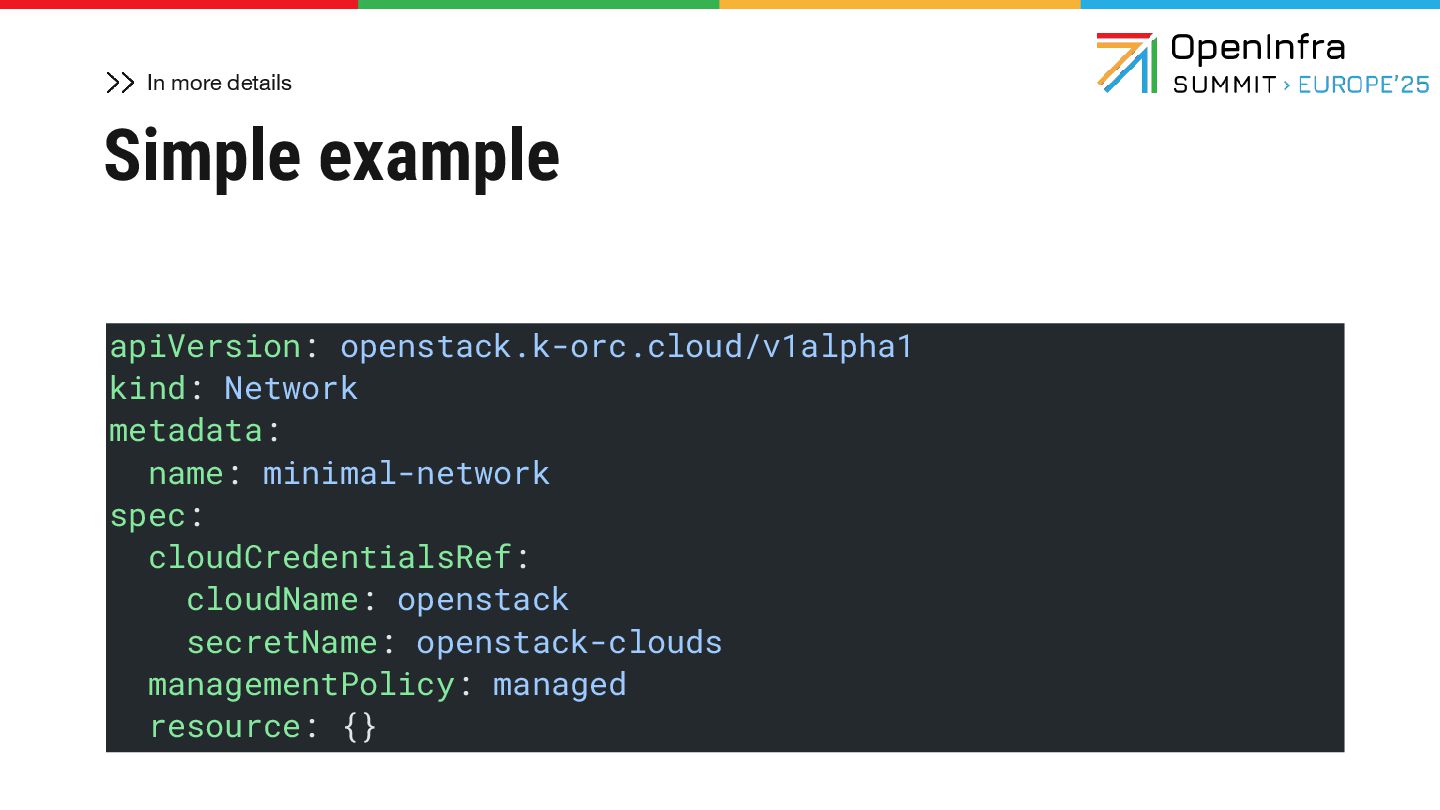 Managing OpenStack resources efficiently can be complex, especially when striving for cloud-native agility and GitOps workflows. In this talk, we'll introduce the OpenStack Resource Controller (ORC), a powerful solution combining the benefits of Kubernetes Custom Resource Definitions (CRDs) and controllers with OpenStack’s rich and mature APIs and application ecosystem. We'll explore ORC's fundamental "raison d'être," highlighting how it directly addresses common provisioning pain points many developers and operators face. We’ll compare ORC against “the competition”, exploring both its strengths and weaknesses. Discover its core goals, design philosophy, and how ORC simplifies the declarative management of your OpenStack infrastructure, enabling seamless resource orchestration for modern cloud-native applications.