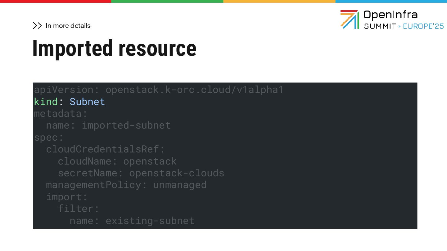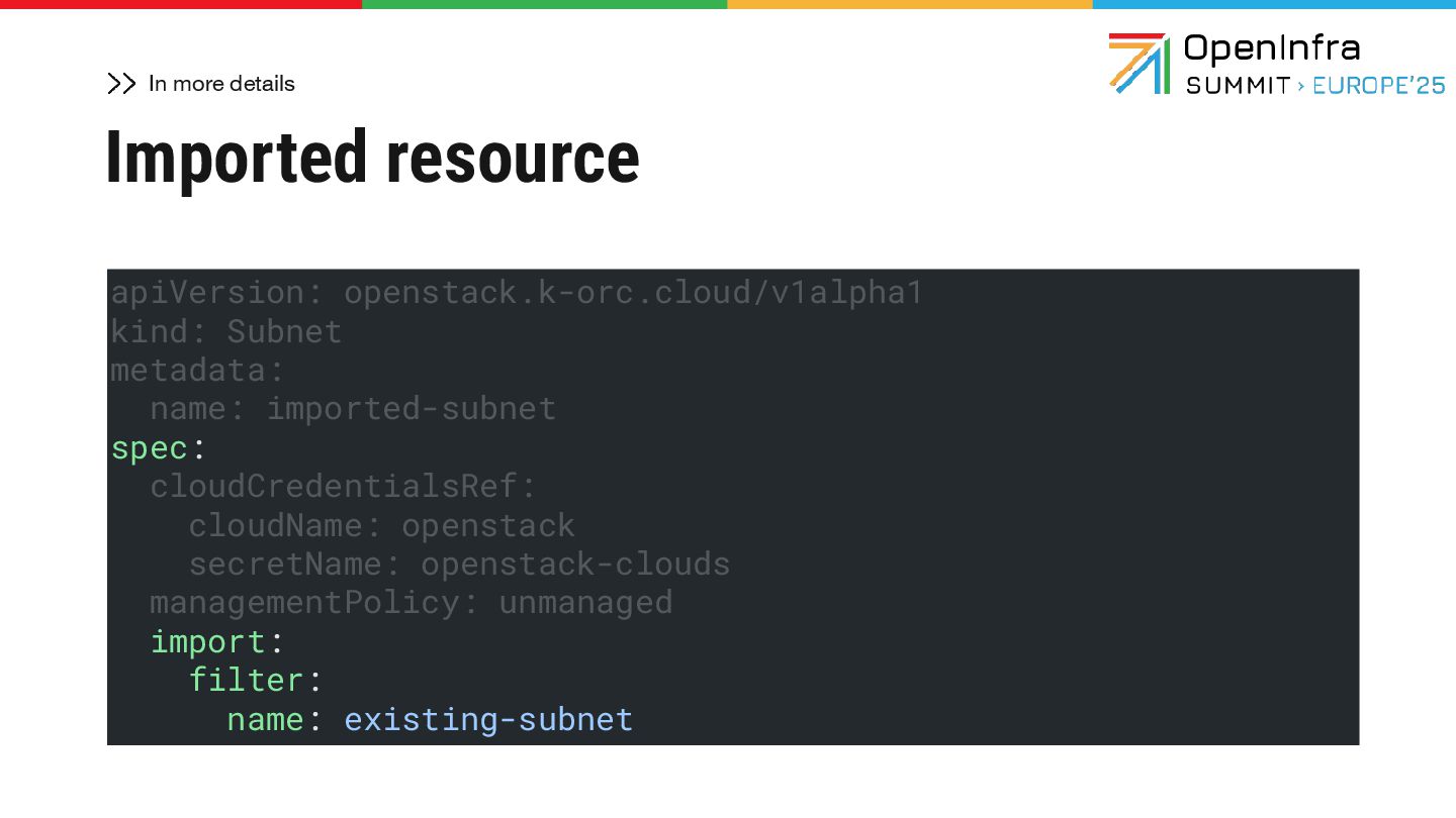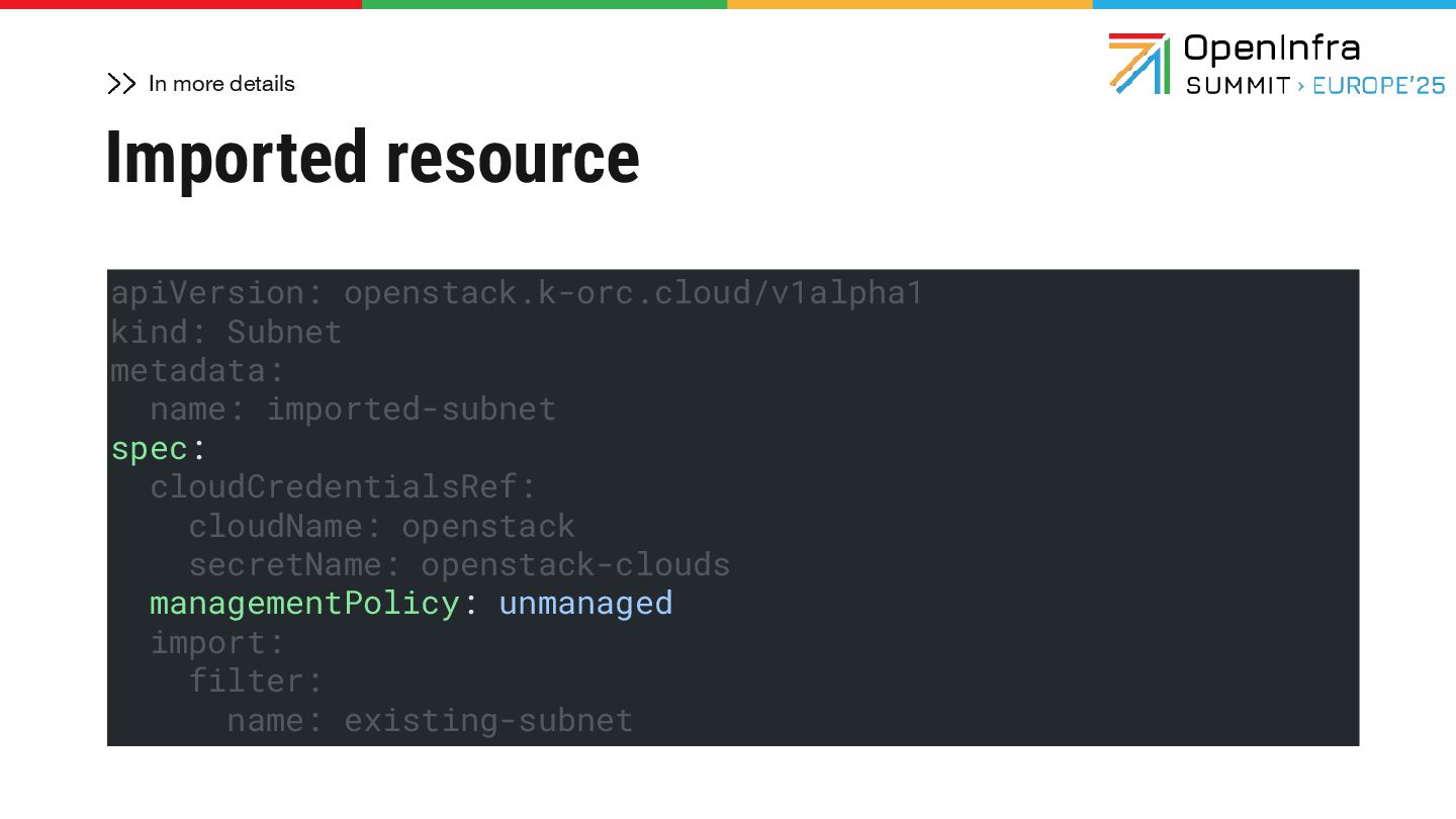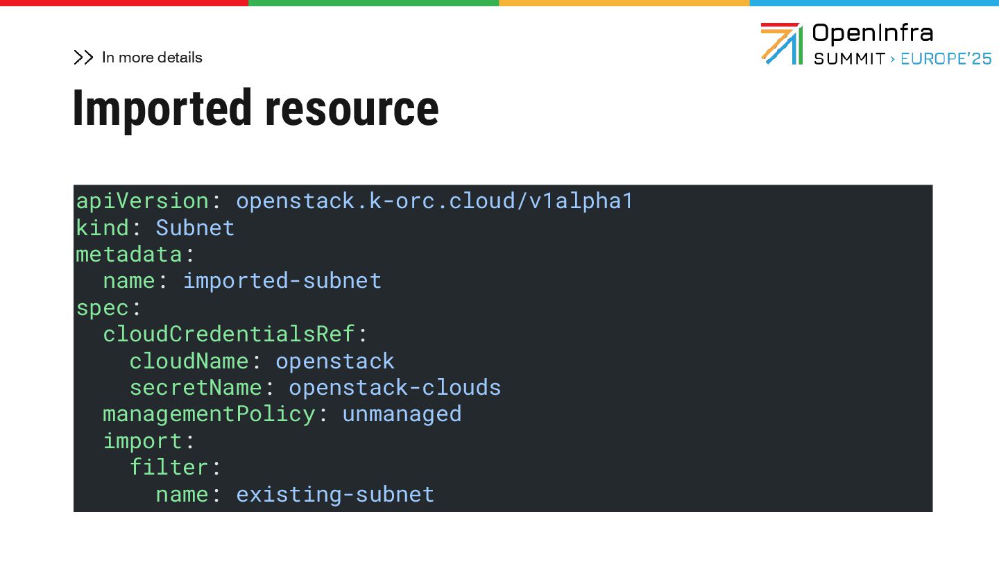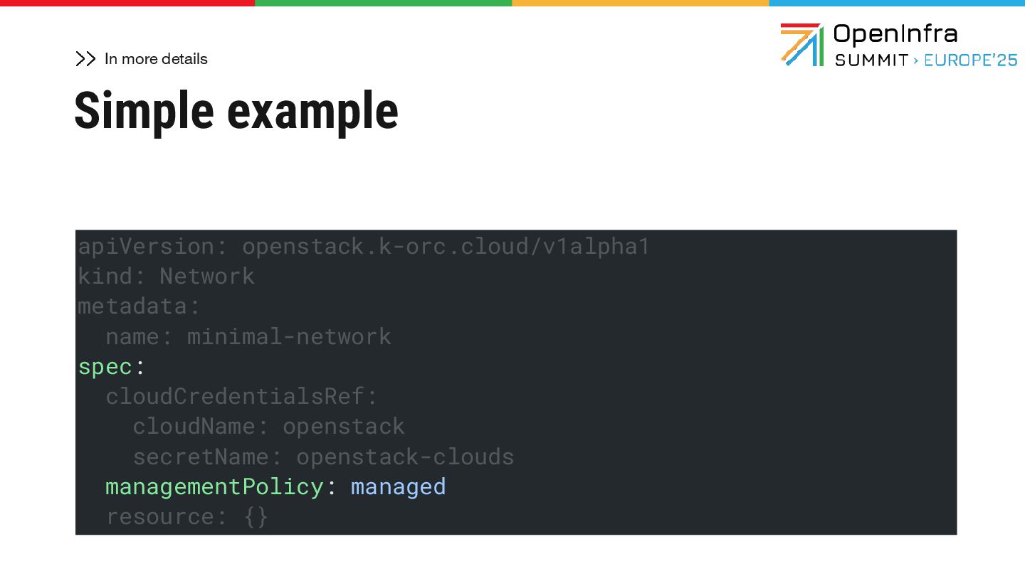 Managing OpenStack resources efficiently can be complex, especially when striving for cloud-native agility and GitOps workflows. In this talk, we'll introduce the OpenStack Resource Controller (ORC), a powerful solution combining the benefits of Kubernetes Custom Resource Definitions (CRDs) and controllers with OpenStack’s rich and mature APIs and application ecosystem. We'll explore ORC's fundamental "raison d'être," highlighting how it directly addresses common provisioning pain points many developers and operators face. We’ll compare ORC against “the competition”, exploring both its strengths and weaknesses. Discover its core goals, design philosophy, and how ORC simplifies the declarative management of your OpenStack infrastructure, enabling seamless resource orchestration for modern cloud-native applications.