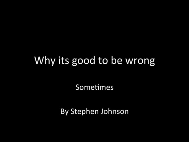 we learn for the experience • We learn new ways of work • Because we improve processes • Self improvement comes through being wrong • You never learn from doing things correctly