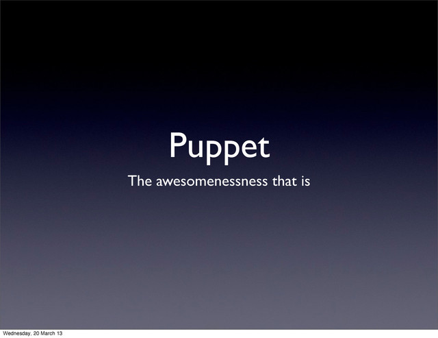 machines • Stop the, ‘i changed that config’ • Cookie cutter machines • Dont care about them anymore Wednesday, 20 March 13