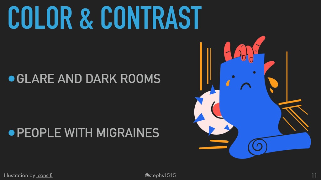 3. COLOR & CONTRAST 11 •GLARE AND DARK ROOMS •PEOPLE WITH